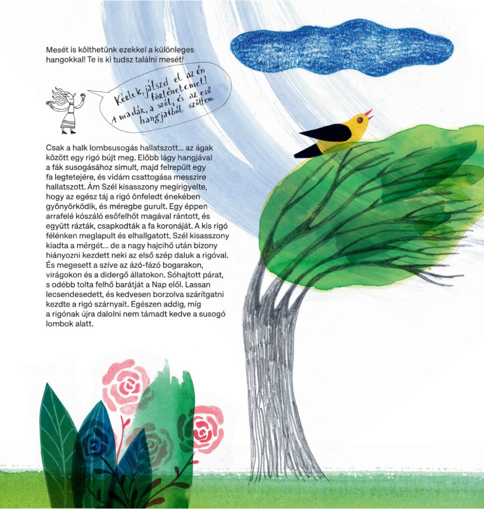 „Utánozd az esőcseppek potyogását-kopogását úgy, hogy ütögeted a billentyűket, fogólyukakat! El is veheted a szádtól a hangszert, és a földre támaszthatod.”