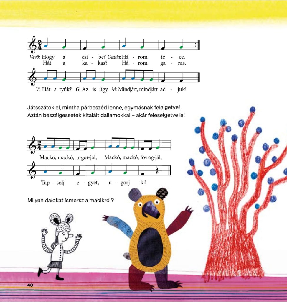 Számtalan ötlet adhat keretet az improvizációnak. Ezek kapcsolódhatnak például a formai-, metrikai szerkezet felismeréséhez vagy akár a hangkészlethez. A felelgetős és visszhang-játékokkal pedig a megszokott ütempáros egységeket, dallamfordulatokat, tonális szerkesztési módokat használva fejleszthetjük a növendék tonális érzékét. Lehetnek ezek a játékok afféle zenei dialógusok, melyek során érzékenyen reagálhatunk a gyermek zenei ötleteire: és jó példával elöljárva, lekerekíthetjük mi magunk a végét.